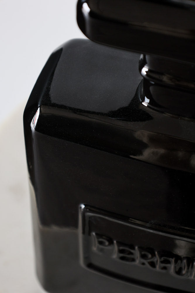 Inspired by vintage perfume bottles, the Black Perfume Bottle Vase is a glamorous vase unlike any other. The perfect alternative to plain glass vases, the fabulous perfume bottle shape and gorgeous black gloss earthenware finish promise to make a statement when styling flowers in your home. We love luxury fragrances at RSG, and something as simple as a spritz of your favourite perfume can instantly lift your mood. With that in mind, this fabulous flower vase features a vintage perfume bottle design to bring a hint of that luxury feeling to your home. Bold and beautiful, the large vase is ideal for a few stems of fresh or dried flowers and looks great styled in your living room or bedroom to master the art of maximalist glamour.