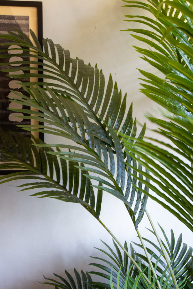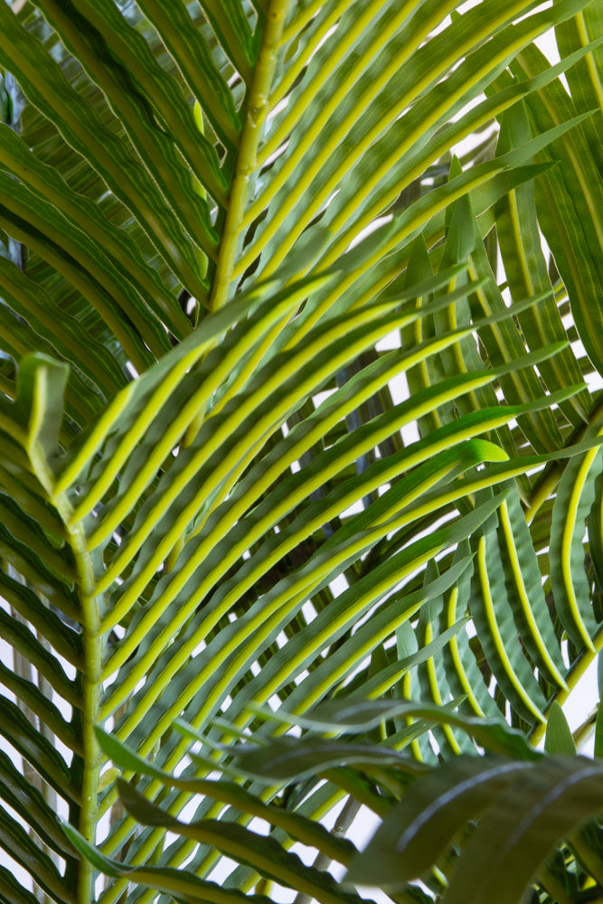 This Large Faux Plant showcases a sumptuously exotic feel, the luscious palm leaves sprout from the base to the top and it will look simply breathtaking amongst any scheme. An Artificial Palm Tree that will grace any room it's gorgeous green features, this faux accessory requires no upkeep, meaning you can treasure this show stopping plant forever and style it around your home accordingly, so what’s not to love?!