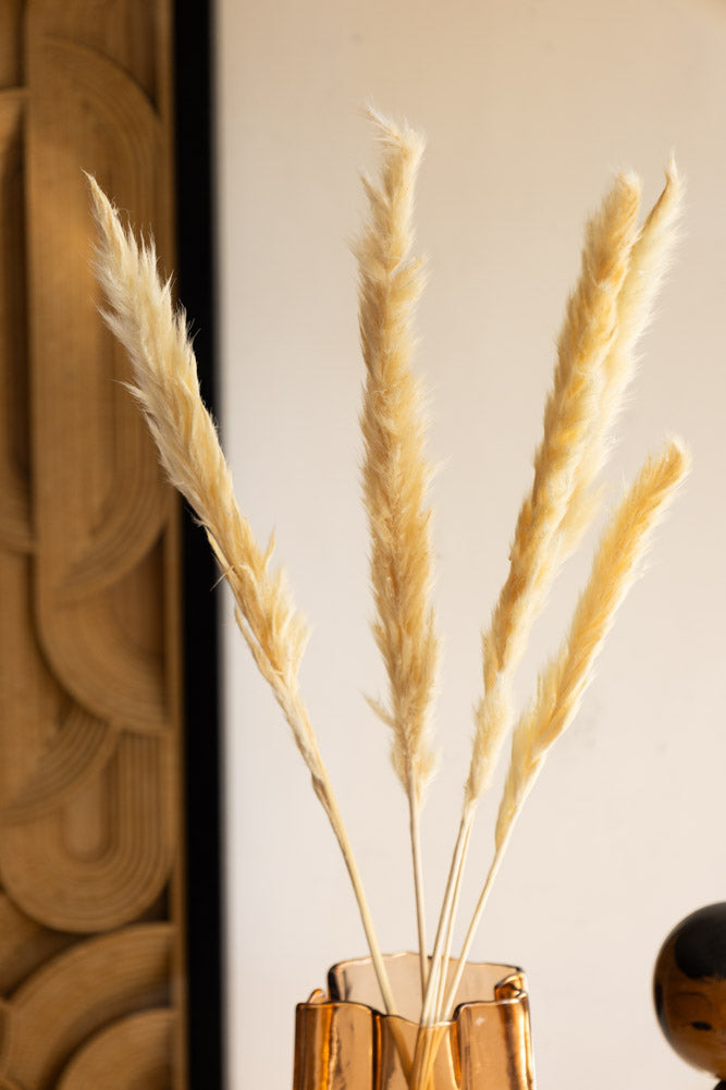 Offering a graceful aesthetic, the Short Natural Pampas Stem is a wonderful addition to decorate your home with effortless elegance. Measuring 75cm in height overall, this dried pampas grass features a mixture of approximately five beige and white stems which will create a calming atmosphere amongst your interior.