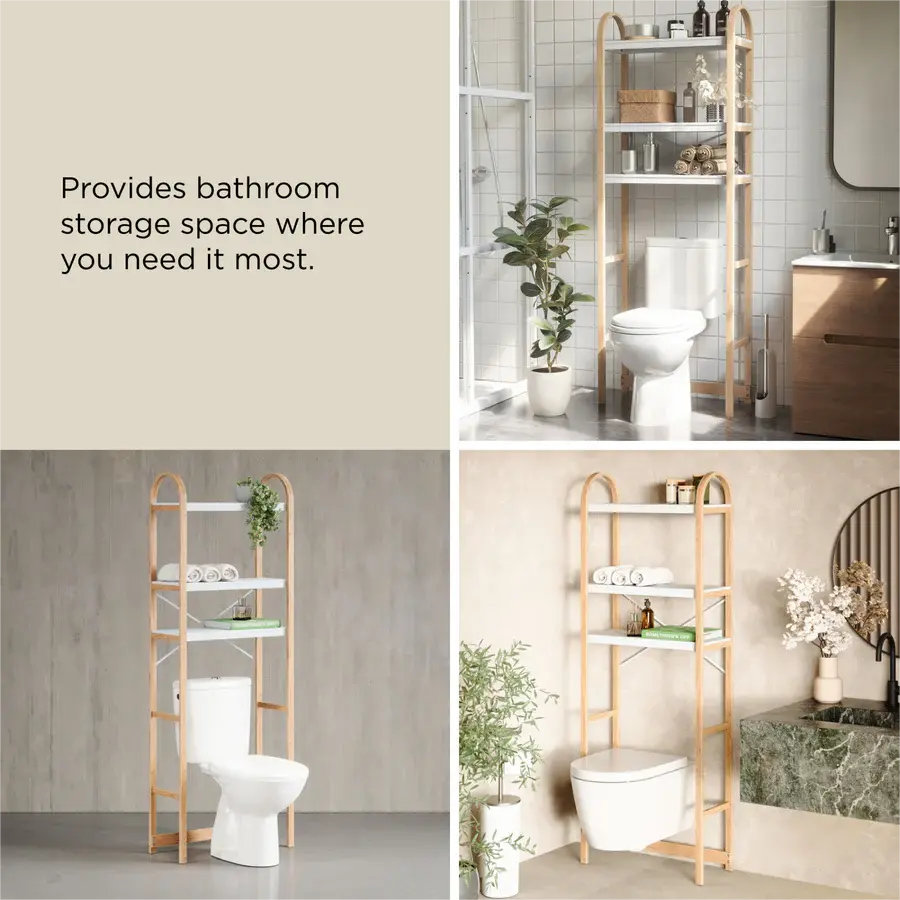 - Space-Saving Storage Solution: Bellwood Over the Toilet Shelf features three wooden tiers and three dowels for elevated storage; holds 13kg (29lbs) per shelf.