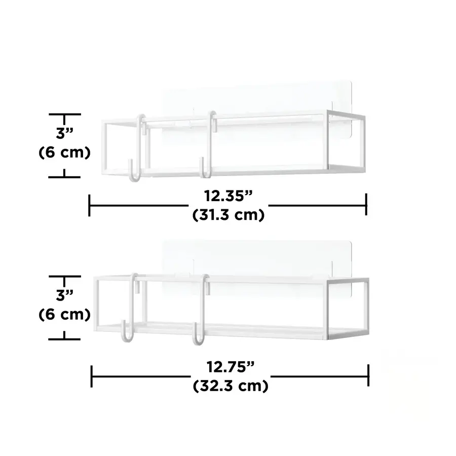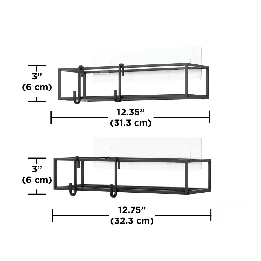 Add elevated storage to your bath or shower space with Cubiko Shower Bins. These non-damaging shower nested storage caddies have a modern, bent-wire design, making them easy to integrate with a variety of decor styles. Easy to install, Cubiko includes non-damaging, waterproof adhesive strips that can be applied on various surfaces such as tiles, drywall, concrete, etc. (does not work on porous surfaces). Each bin has a max load of 10 lbs (4.5 kg) and is made of rust-free metal. Includes two metal hooks to hold loofahs, small towels, and more. This shower bin is made with an eco-friendlier finish. It produces 85% less water and solid waste than traditional electroplating finishes. ⓘ Non-Damaging Adhesive Installation: Completely non-damaging to your tiled walls. Cubiko includes a strong adhesive backing that can be applied on various surfaces such as tiles, drywall, concrete, etc. Surfaces must be smooth and clean for mounting. Warning: Surface damage may occur if adhesive mounting is removed from drywall, concrete, wallpaper, and porous surfaces.