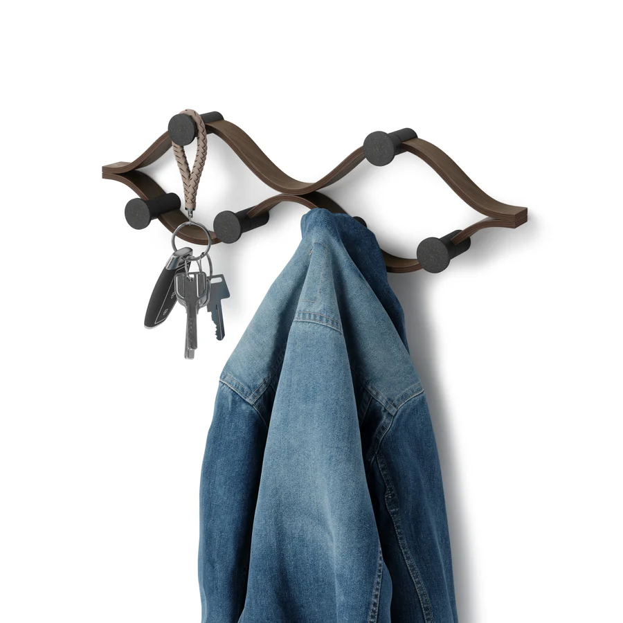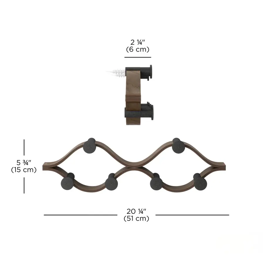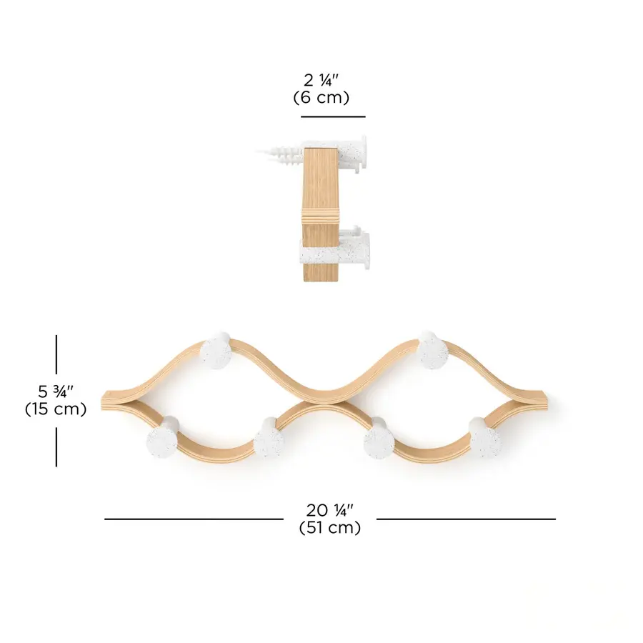 Elevate your organization with the Umbra Montage 6 Hook. Its modern bent-wood design seamlessly blends into any décor while offering ample storage with six hooks for coats, hats, scarves, and more. Crafted from renewable wood sources, it's both stylish and environmentally friendly. Pair it with our Montage Collection for a cohesive, curated look in your home. Max weight capacity of 30 lbs (13.6kg). Holds 5 lbs (2.3kg) per hook.