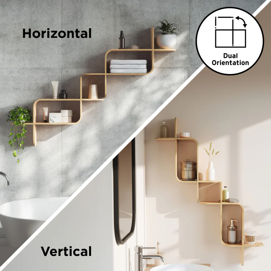 Create An Eye-Catching Wall Statement: With a bold, geometric design, Montage Shelf makes a decorative impact on any blank wallMade Of Natural Bent-Wood: Made of natural bent-wood from a renewable wood sources, Montage mixes warmth and curved lines for a decorative displayMounts Horizontally Or Vertically: Montage's unique design allows it to be mounted vertically or horizontally on your wall with a total weight capacity of 15lbs. (6.8kg)Multi-Purpose Storage: Use Montage in your bathroom, living room, bedroom office, entryway and more; perfect for displaying decorative objects, plants, picture frames, personal items and moreOriginal Design & Satisfaction Guaranteed: Our team of international designers brings thought, creativity and original design to everyday items. Umbra products are made to last using high quality materials and we back that with a 45-Day Money Back Guarantee & a 1-Year Manufacturer’s Warranty. Don’t be fooled by copy-cat products. Choose Umbra and get the original